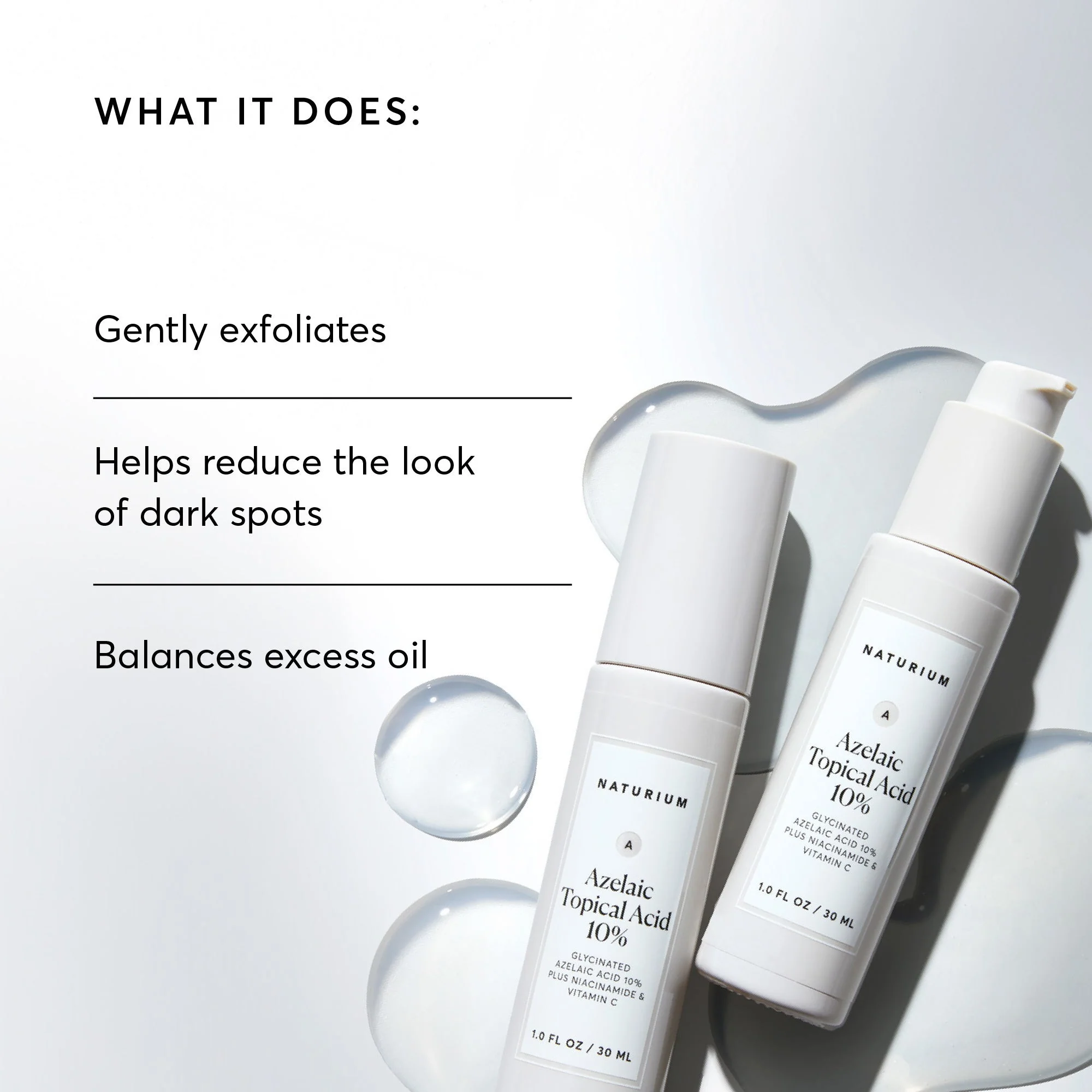 Our Azelaic Topical Acid 10% is clinically proven to exfoliate, reduce redness and improve skin tone and texture in just 8 weeks.*