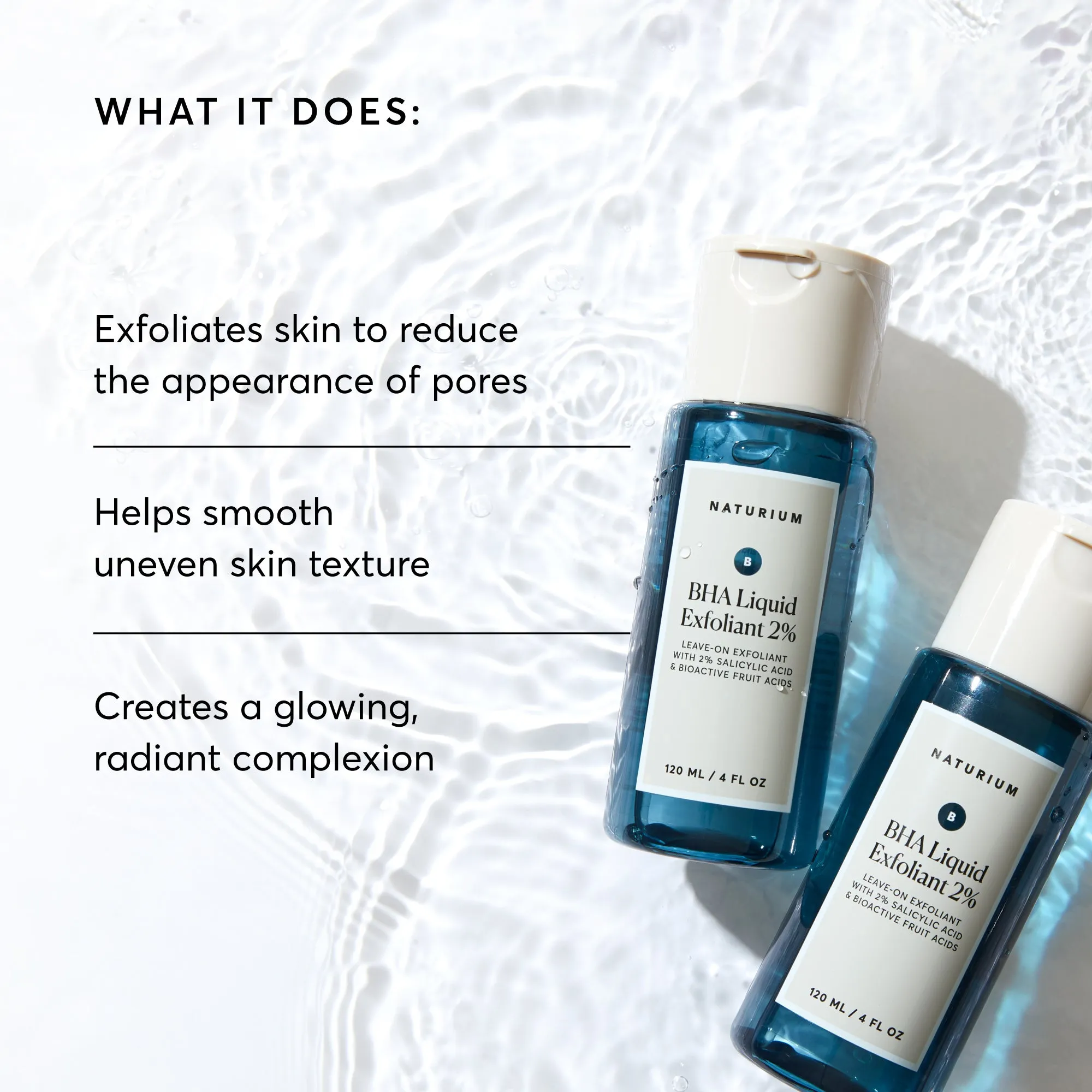 Our leave-on BHA exfoliant is formulated with an efficacious level of encapsulated salicylic acid, plus bioactive fruit acids, and is clinically proven to reduce the appearance of pores, smooth and even skin tone, revealing more radiant, brighter looking skin.*